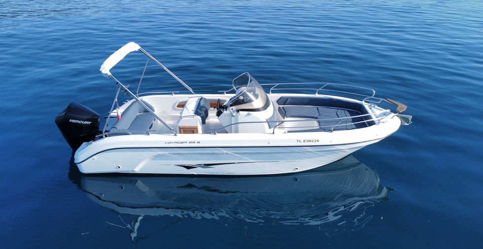 A vendre ce RANIERI Voyager 23 S remotorisé en 2025 avec un MERCURY F 200 FOUR STROKE V6 comptabilisant 72 heures d'utilisation.